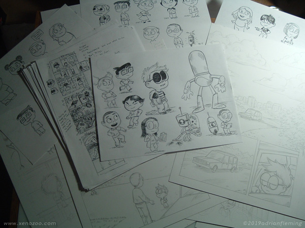 I haven’t been as productive as I would have liked in 2019. I had started the year wanting to try a graphic novel pitch for the super science club and put xenozoo aside to work on it. It was going alright until about July when I bought a small house. With most people this would just mean a few weeks to organize a move. But the house is what you would probably call a “FIXER-UPPER” and has taken the majority of my time to get it to the point where it is livable. In any case, I should be moving into it soon and hope to get back to comics in the new year.