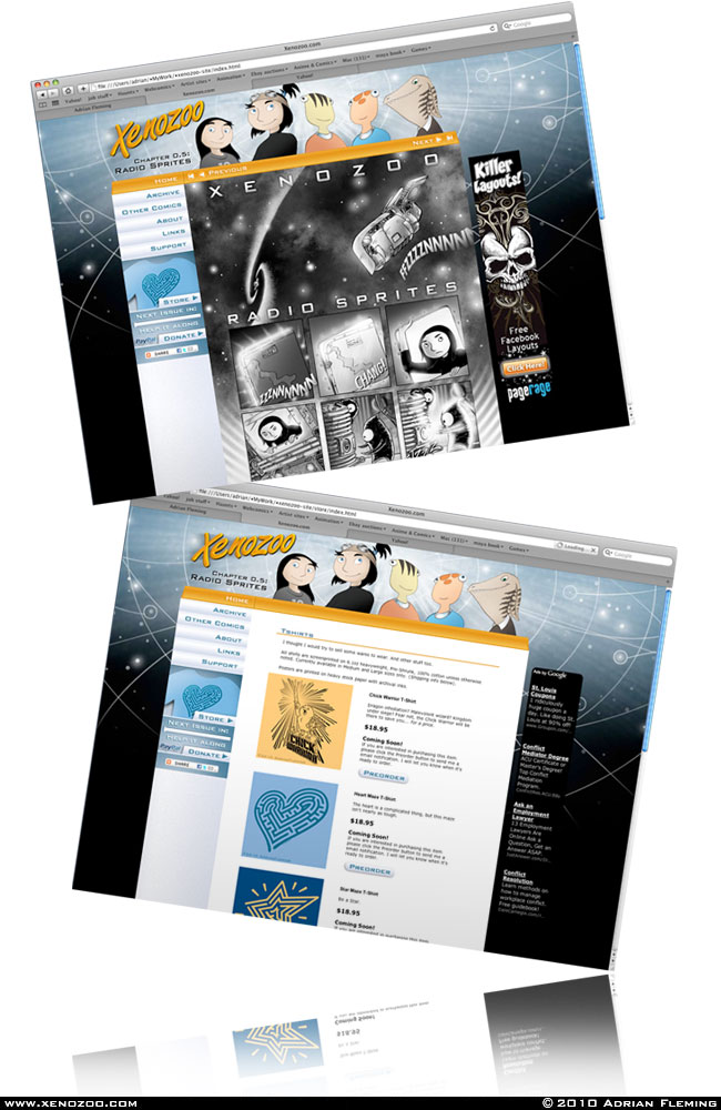 Oh yeah, I also built the website. Hand-crafted by wood elves using Dreamweaver. The site utilizes a few third party scripts for the analytics, donation, store items and advertising. (Google Analytics, Paypal and Google Ads.) All simple html inclusions.