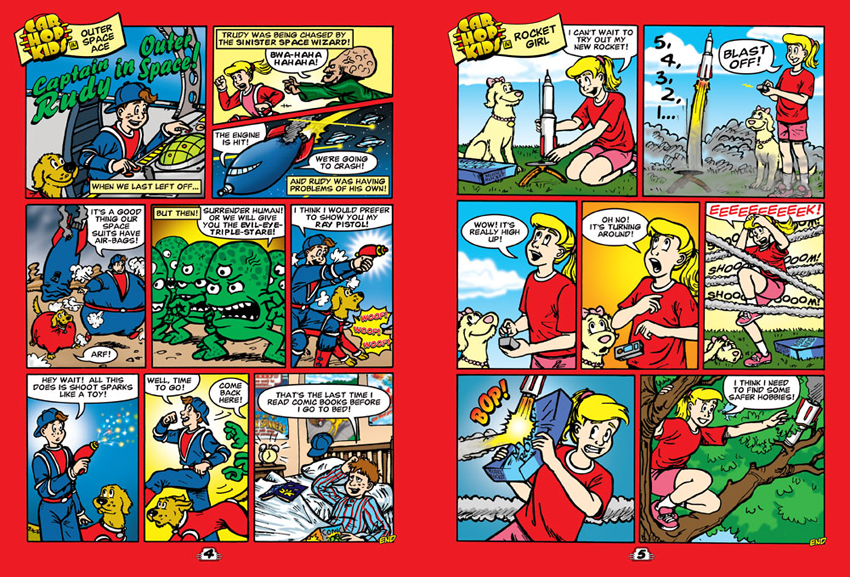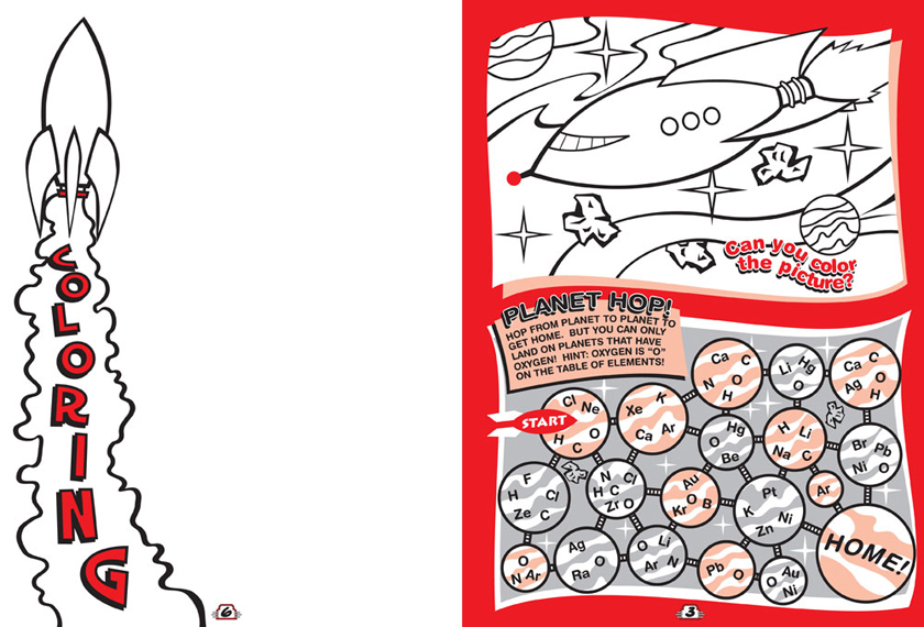 Interior of a Sci Fi themed activity book for Ruby's Diner. Comics and Illustrations were penciled, inked and then colored in Photoshop. Game elements, graphics and final layout was done in Freehand.